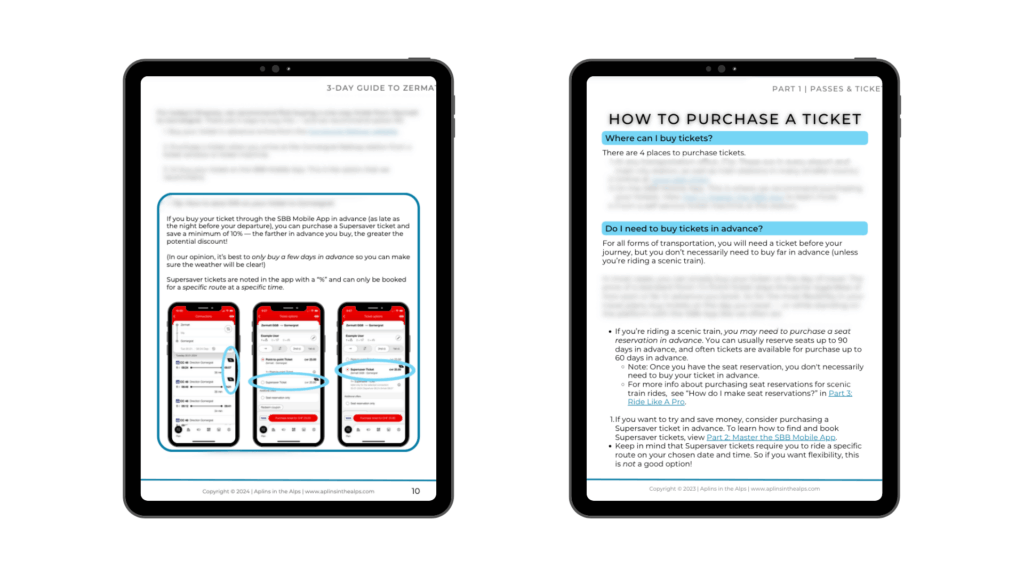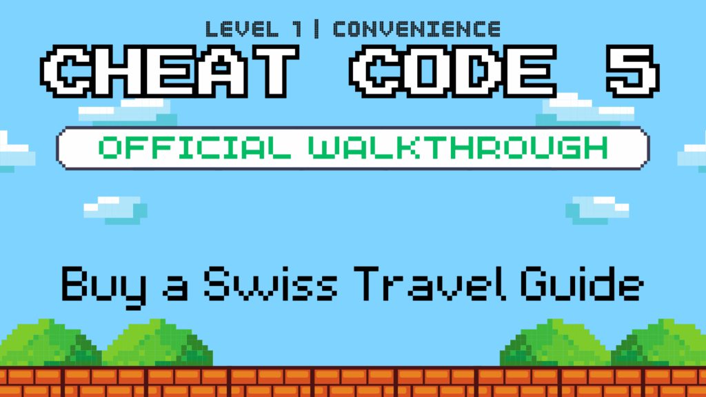 But there’s one more Cheat Code in Level 1: to buy one (or more!) of our Swiss Travel Guides. Each Guide is built around a complete minute-by-minute itinerary, and takes the guesswork out of choosing a train pass, knowing when and how to buy tickets, and when seat reservations are mandatory or worthwhile, plus exactly how to navigate from mountains to lakes to cities and beyond.
