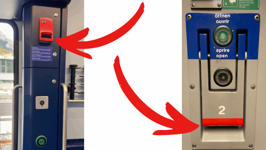 Just never, ever, ever — say it again with me — never, ever, ever pull the thing that looks like this — that’s the emergency break. And yes, we’ve been on a train when it suddenly ground to a halt and some poor tourist was fined hundreds of Swiss Francs for accidentally pulling it.