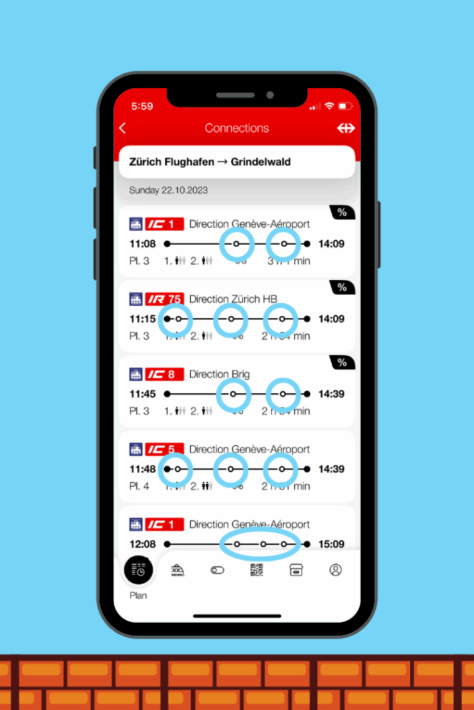 So for this Cheat Code, use the SBB Mobile App to check how many stops are included in your journey, indicated by those open white dots.