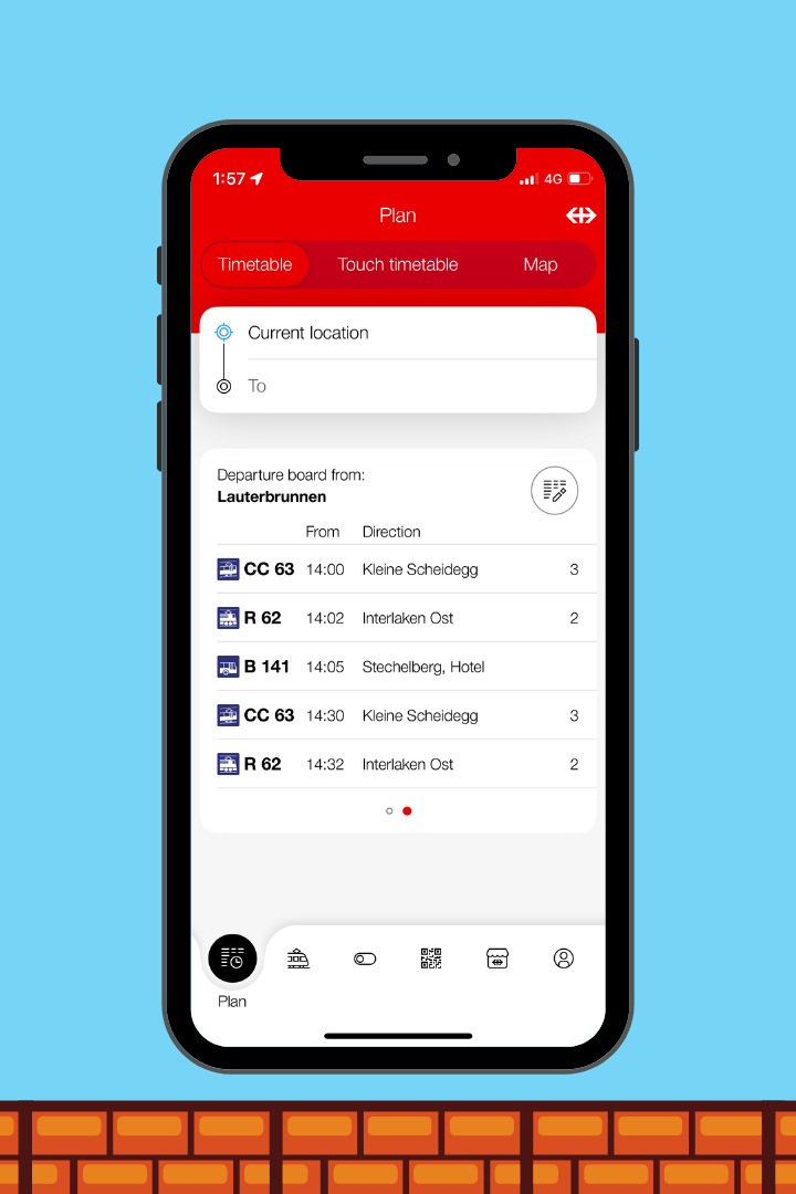 This is the free national railway app for Switzerland where you can: