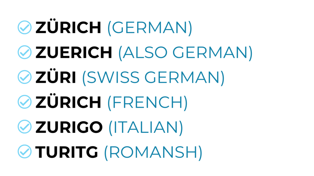 There are 4 language regions in this tiny country and Zürich is in the German-speaking part. Which also means it’s technically spelled with an umlaut — or those 2 little dots — over the “u” and pronounced as “Tsoo-rikh.” Although there are a lot of variations depending on which language you speak: