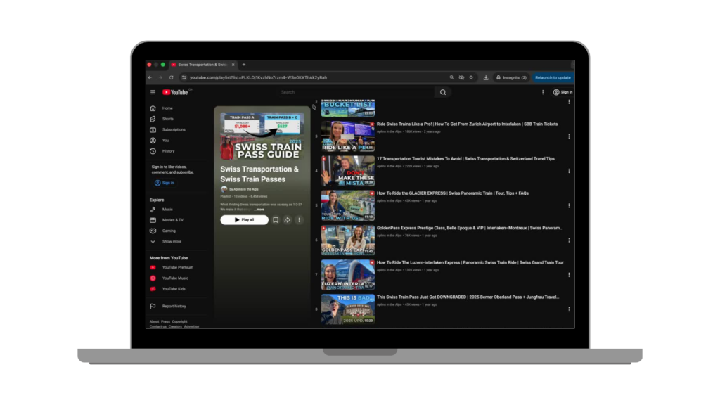 And third, we have an entire playlist of transportation videos to help you navigate Swiss trains, boats, buses, cable cars and beyond.
