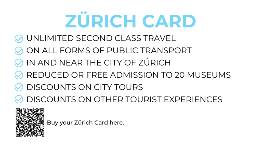 But there is something similar available for purchase called the Zürich Card. It’s available for 24 or 72 hours and offers “unlimited Second Class travel on all forms of public transportation in the city of Zürich and surrounding region” as well as reduced or free admission to 20 museums and discounts on city tours and other tourist experiences.