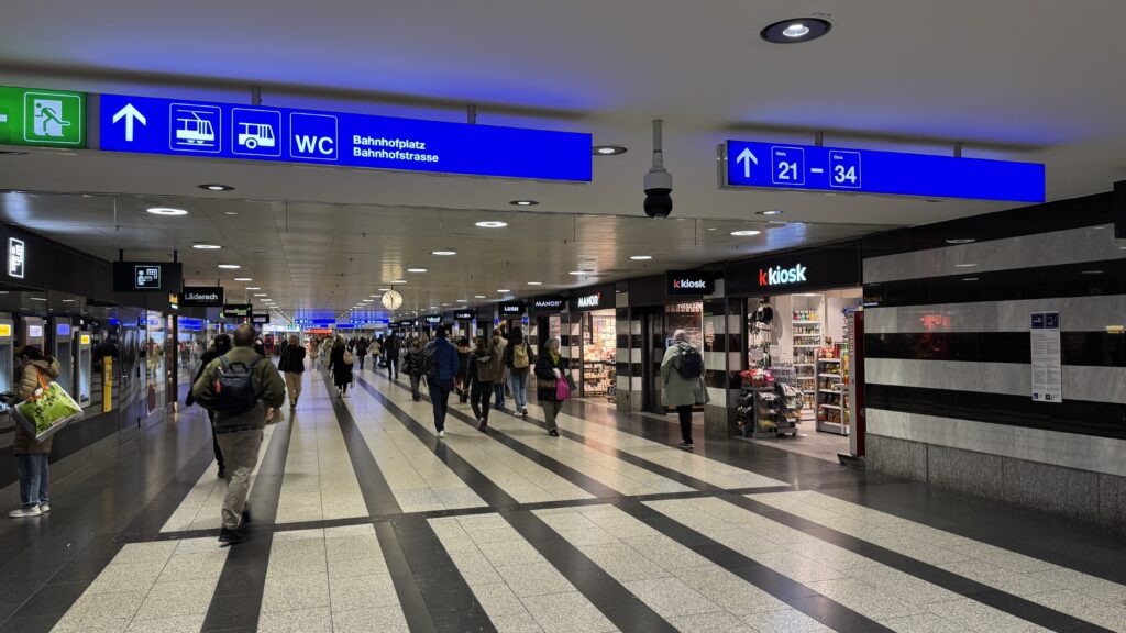 By the way, it’s helpful to note that the Zürich Airport train stop is called “Zürich Flughafen” and the central train station in the city is called “Zürich HB,” which is short for Zürich Haubtbahnhof, meaning “main station.”